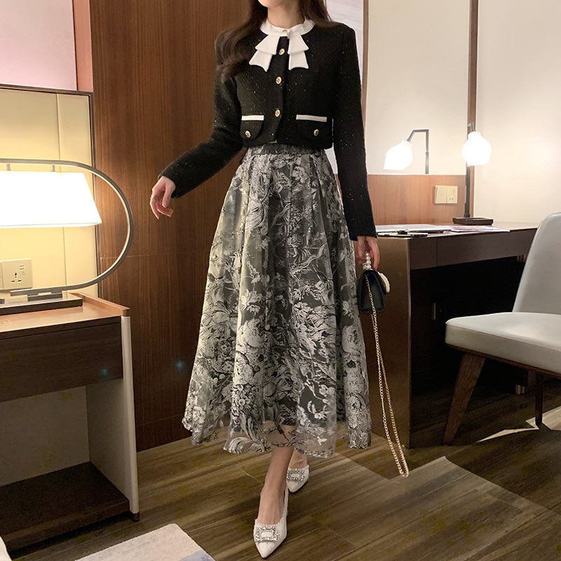 Organza black skirt autumn and winter 2022 new high-waist French A-line mid-length skirt